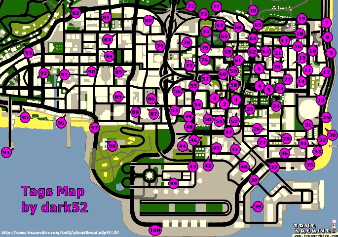 Gang Tags Guide with screenshots and maps GTA: San Andreas mega cheats resources: Grand Theft Auto: San Andreas Tag .